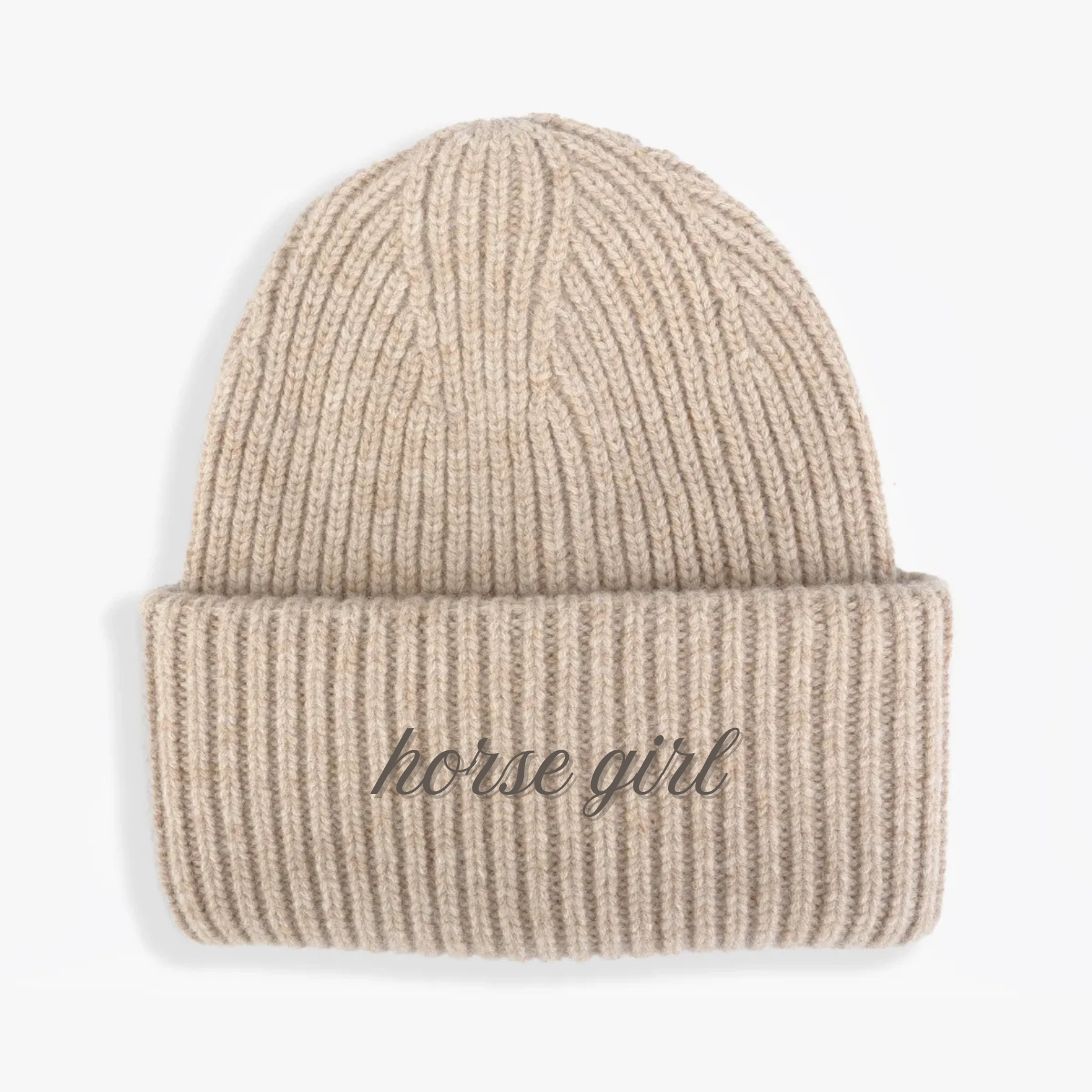 Soft, itch-free, and gentle on skin, the "Horse Girl" beanie combines functionality with style, making it a perfect addition to any equestrian’s cool-weather wardrobe.